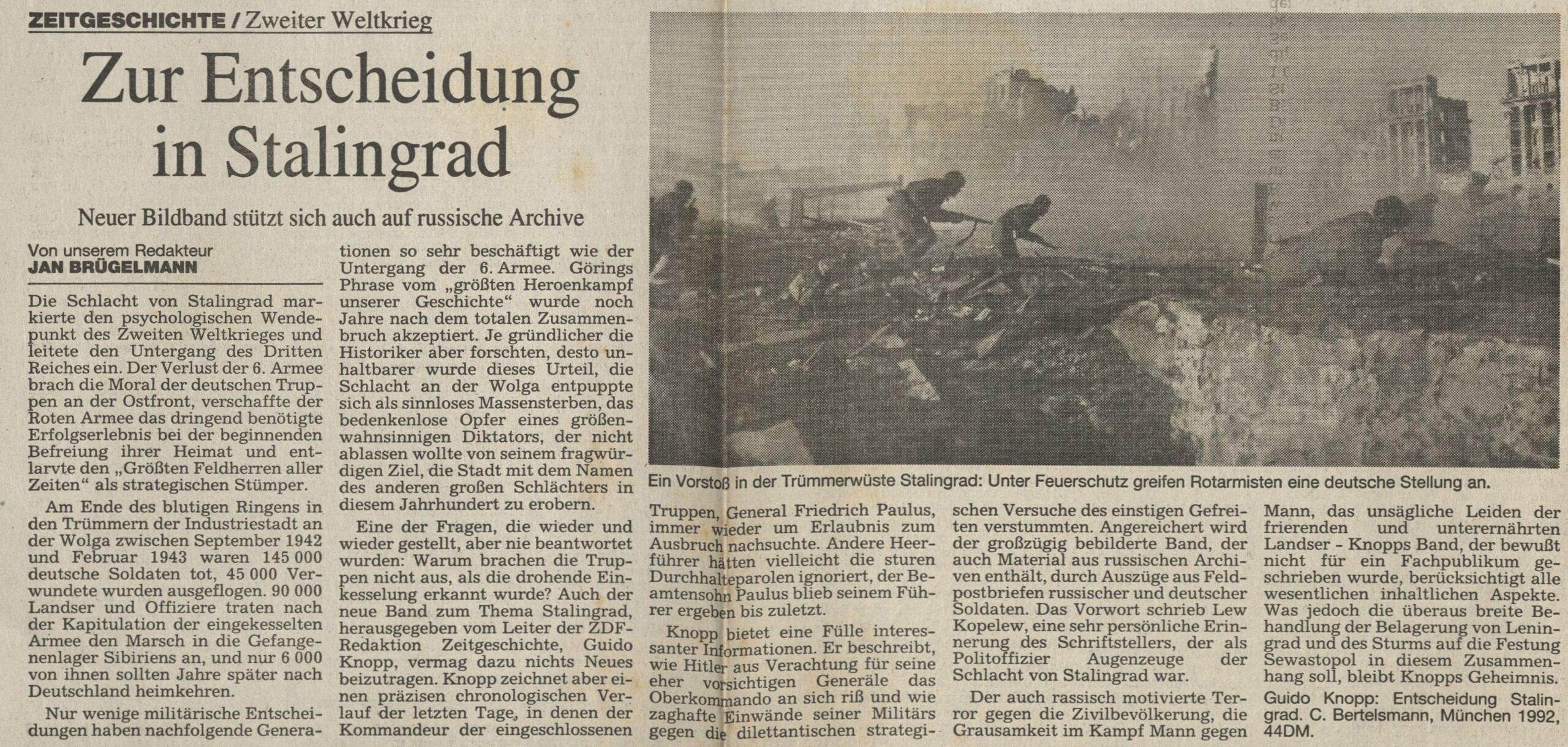 Guido Knopp: Entscheidung Stalingrad, C. Bertelsmann, München 1992, 44DM