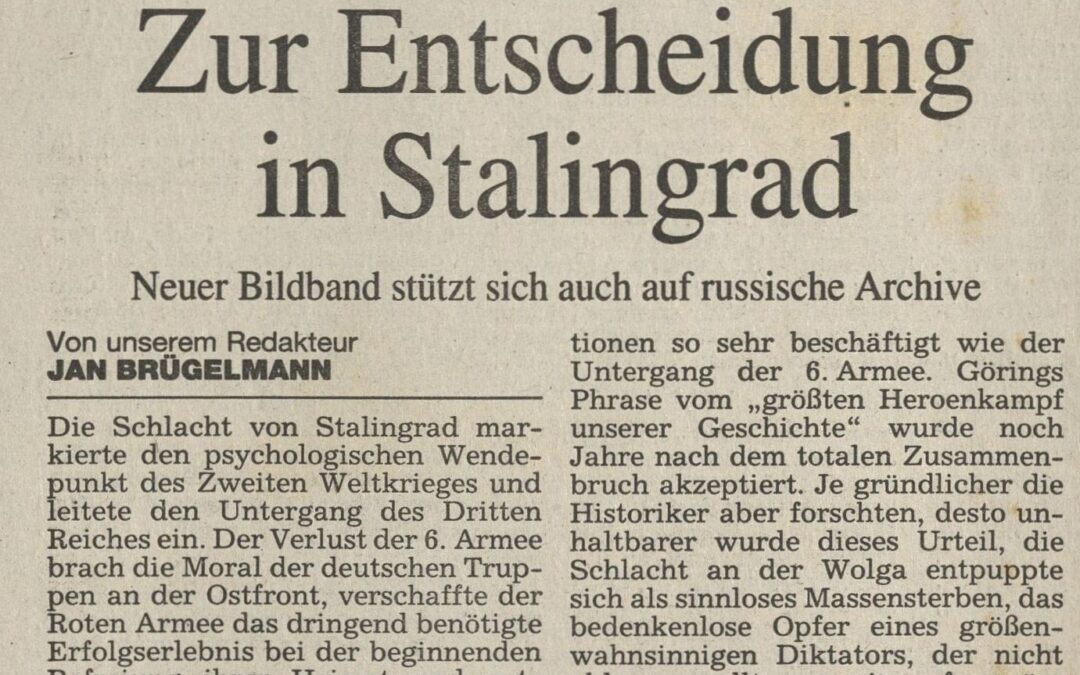 Nur wenige militärische Entscheidungen haben nachfolgende Generationen so sehr beschäftigt wie der Untergang der 6. Armee. Görings Phrase vom „größten Heroenkampf unserer Geschichte“ wurde noch Jahre nach dem totalen Zusammenbruch akzeptiert. Je gründlicher die Historiker aber forschen, desto unhaltbarer wurde dieses Urteil, die Schlacht an der Wolga entpuppte sich als sinnloses Massensterben, das bedenkenlose Opfer eines größenwahnsinnigen Diktators, der nicht ablassen wollte von seinem fragwürdigen Ziel, die Stadt mit dem Namen des anderen großen Schlächters in diesem Jahrhundert zu erobern.