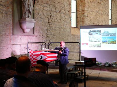 Bereits im Oktober vergangenen Jahres war die Marien-Kirche in Aken bis auf den letzten Platz besetzt. Anlass war die Lesung von Werner Meyer-Deters aus seinem Buch „Von der Elbe zum Rhein“. Zwischen historischen Fahnen (siehe Beitrag zur Ausstellung) und vertrauten Gesichtern wurde an diesem Abend deutlich, dass die Geschichte der Binnenschifffahrt die Stadt noch immer bewegt.