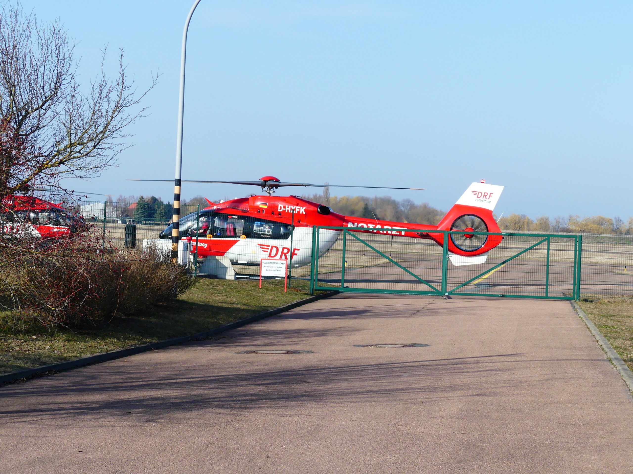 Auf dem Rückweg bot sich noch ein kurzer Abstecher zum Flugplatz Halle/Oppin an. Der kleine Verkehrslandeplatz nordöstlich von Halle ist unter anderem → Standort der DRF Luftrettung. Regelmäßig starten von hier aus Rettungshubschrauber zu Einsätzen in Sachsen-Anhalt und den angrenzenden Regionen.